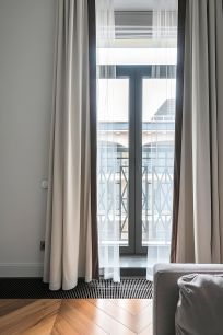 Апартаменты расположены на 8 и последнем этаже, что обеспечивает хорошую естественную освещенность.