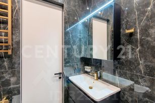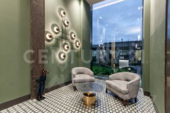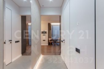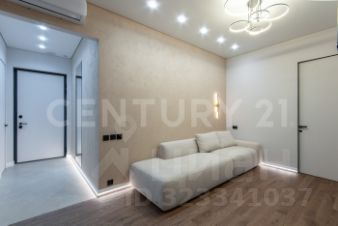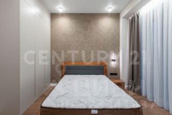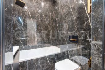 Ремонт выполнен в современном стиле. С большим вниманием подобрана вся мебель, освещение и техника. В квартире имеется отдельная вместительная гардеробная комната. Квартира также оснащена просторной туалетной комнатой с ванной.