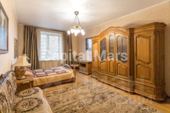 БЕЗ КОМИССИИ ДЛЯ АРЕНДАТОРА. В зеленом благоустроенном районе столицы предлагается комфортабельная квартира. Выполнен качественный ремонт в классическом стиле, просторные комнаты располагают удобной мебелью. Кухня оснащена бытовой техникой, в том числе посудомоечной машиной, и обеденной зоной. Для поддержания порядка есть несколько шкафов.