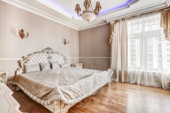Сдаётся просторная трёхкомнатная квартира с дизайнерским ремонтом, расположенная на 9 этаже (фактически 12 этаж) монолитно-кирпичного дома Триумф Палас в подьезде 5Б. Общая площадь квартиры составляет 145.6 кв. м, жилая площадь — 69.5 кв. м, а кухня занимает 18.3 кв. м. Высокие потолки (3.15 метра) создают ощущение простора и света. Дом находится всего в 10 минутах пешком от метро.
