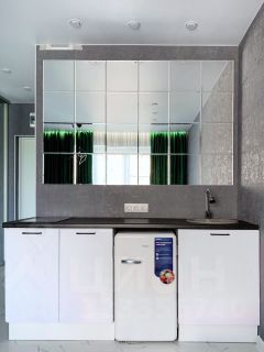 - Оптимальное оснащение всей необходимой техникой: высокоскоростной интернет, телевидение, варочная панель, холодильник, стиральная машина, чайник