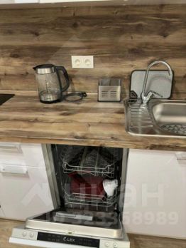 Кухонный гарнитур с духовым шкафом и варочной индукционная поверхностью, стиральная машина с сушкой, посудомоечная машина, холодильник.