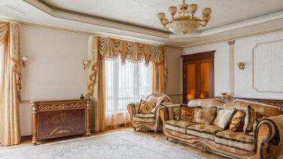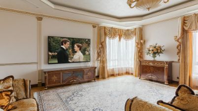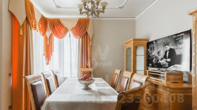 Квартира с тремя спальнями площадью 232 м² в комплексе премиум-класса "Воробьёвы горы". Планировка: просторная гостиная, кухня с обеденной зоной, мастер-спальня с санузлом и гардеробной, две детские спальни, кабинет, четыре санузла, холл с гардеробной комнатой. Квартира укомплектована мебелью, бытовой техникой, включая кондиционеры, установлена сантехника Gessi. Из окон открываются виды во двор и на улицу. Два машино-места включены в стоимость.