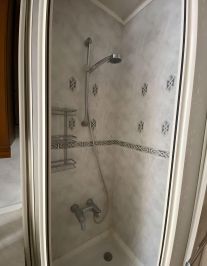 Душ расположен на кухне (изначальная планировка квартир в этих домах).