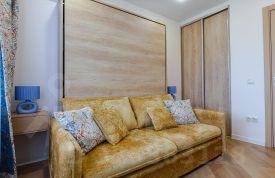 В спальне кондиционер, диван-кровать-трансформер Olissys, ТВ 50 4K Haier, встроенный шкаф, шторы - блэкаут.