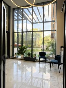 А также Wi-fi, мультимедийная онлайн-платформа с кинотеатром, система кондиционирования, видеодомофон, тёплый пол, панорамное остекление, система защиты от протечек, закрытая территория комплекса с круглосуточной охраной, пропускным режимом и видеонаблюдением, подземная парковка.