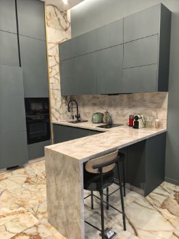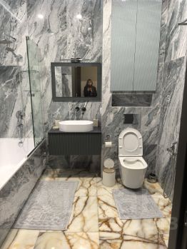 В квартире сделан дизайнерский ремонт, который сочетает в себе стиль и функциональность. Есть вся необходимая мебель и техника: кондиционер, холодильник, посудомоечная и стиральная машины, телевизор. В кухне и комнате также имеется мебель. Санузел совмещённый, оборудован ванной. Окна выходят на улицу, что обеспечивает хорошее естественное освещение.