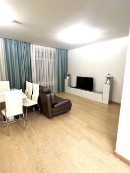 ЖК ONLY. Прекрасная 3-х комнатная квартира. 2 спальни, 2 санузла (один с душевой кабиной, второй с ванной) и зона кухни-гостиной. В каждой комнате установлен кондиционер. Есть вся бытовая техника-холодильник, плита, духовка, посудомоечная машина, стирально-сушильная машина.
