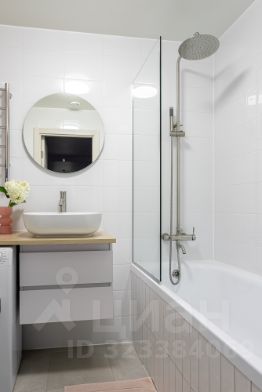 • Современная сантехника: ванна с стеклянными перегородками, умывальник, дизайнерское освещение.