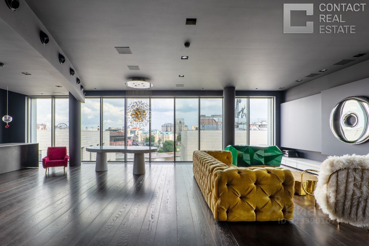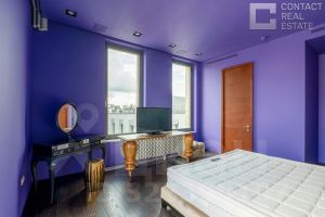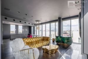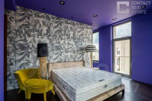 Интерьер пентхауса достаточно смелый, своего рода арт-объект, наполнен яркими дизайнерскими элементами (НО! готовы обсудить вывоз/замену каких-то предметов или смену цветовых решений стен под запрос арендатора).