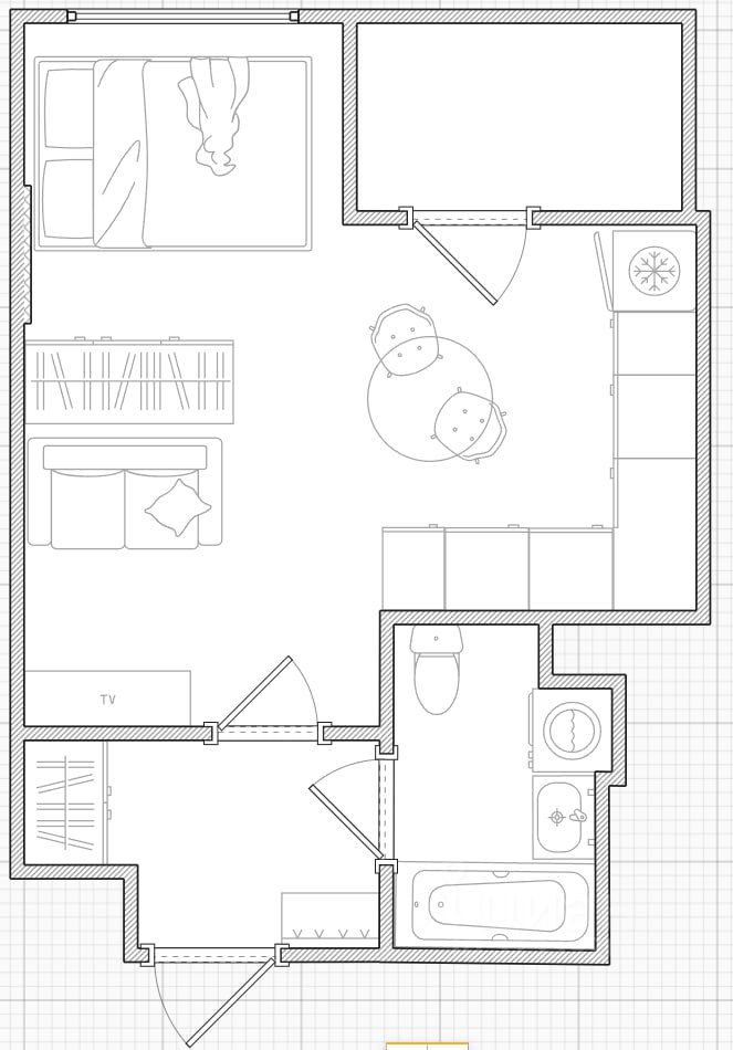 Площадь — 26 м² + балкон 2,5 м² (можно обустроить под кабинет/зону отдыха/на ваше усмотрение).