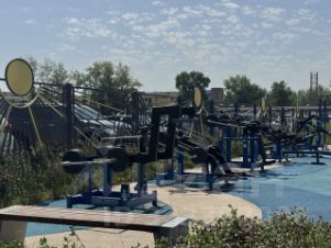 Новая детская площадка и тренажёры во дворе (баскетбольная площадка)