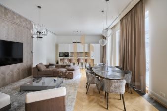 Удобная и функциональная планировка квартиры позволяет разместиться семьей любого состава: две мастер-спальни, несколько гардеробных, в том числе сезонная, большая кухня-гостиная с собственной террасой, постирочная, гостевой санузел - все предусмотрено для вашего комфортного проживания. Апартаменты полностью оборудованы техникой, в стоимость включено машино-место.