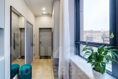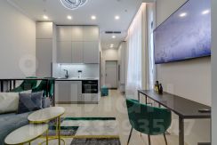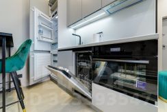 В квартире высокие потолки, встроенная мебель, вся техника - посудомоечная машина, духовка со встроенной микроволновкой, холодильник, индукционная панель, стиралка с сушкой, кондиционер. Техника ведущих брендов - Bosch, Liebherr, Electrolux.