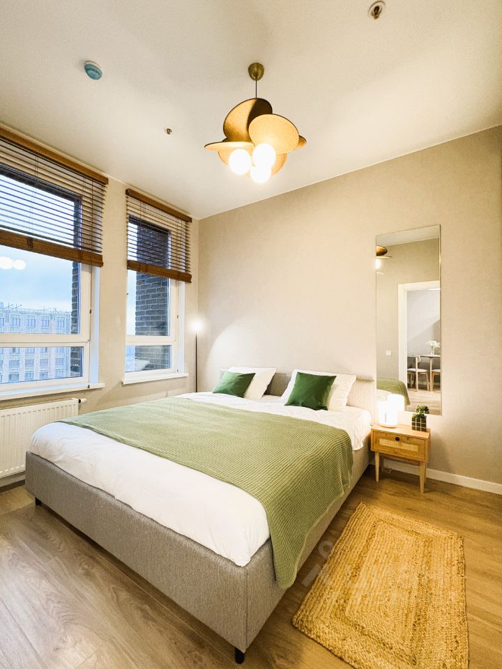 Спальня с кроватью king size, ортопедическим матрасом и вместительным шкафом.