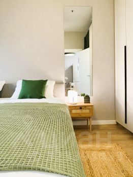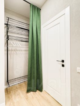 Зона прихожей с большим зеркалом и системой хранения. Для арендаторов есть пылесос, утюг, гладильная доска. В санузле полноразмерная стиральная машина с функцией сушки.