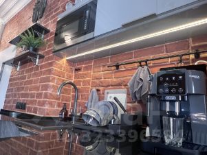 Компактная кухня со столешницей из натурального камня, включает в себя Барную стойку, Кофемашину DeLonghi, индукционную Варочную панель, СВЧ-печь, Холодильник Liebheer, фильтр питьевой воды, посуду - лучшие коллекции ИКЕА.