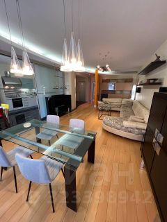 Планировка квартиры: просторный холл, гостевой сан.узел, гардеробная при входе, большая гостиная- столовая 50 кв.м.( отделена раздвижной стеклянной перегородкой от кухни), кухня 15 кв.м. (на кухню два входа из холла и гостиной), изолированная спальня 25 кв.м. с большой гардеробной и сан узлом, где расположены ванна и душевая кабина. Выход на лоджию из спальни. Окна выходят во двор и тихий переулок.