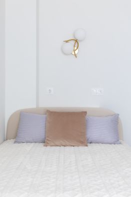 В комнате кровать со спальным местом шириной 140 см с хорошим матрасом средней жесткости. Вместительный шкаф для любой одежды и вещей. Большой раскладной диван. Рабочая зона с письменным столом с 6 розетками.