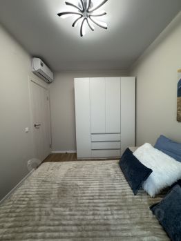 В спальне: удобная кровать с хорошим жестким матрасом; шторы Блэкаут, тумба прикроватная, вместительный шкаф и кондиционер. Будете высыпаться после трудового дня.
