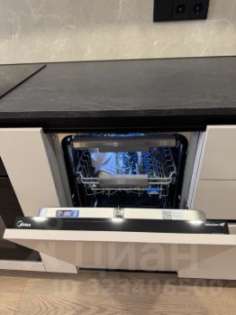 На кухне: духовка, варочная панель, вытяжка, микроволновка, посудомоечная машина,