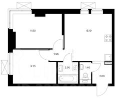 45,3 м² с двумя изолированными комнатами