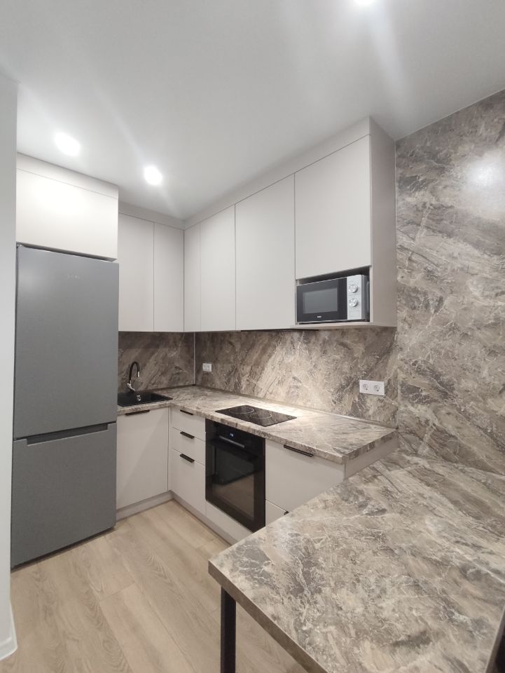 Шикарная однокомнатная квартира евроформат (большая кухня-гостинная и спальня), из спальни выход на просторный балкон. Отличный ремонт, есть все необходимое (стиральная машина, холодильник, духовой шкаф, варочная панель, в перспективе готовы установить кондиционеры), современная мебель, много места для хранения.