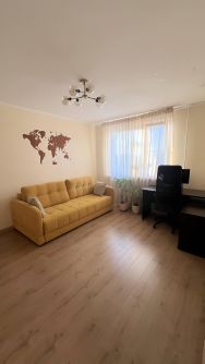 В квартире сделан хороший ремонт. Она полностью меблирована: в комнатах и на кухне есть вся необходимая мебель. Для вашего удобства установлены кондиционер, холодильник, посудомоечная и стиральная машины. Ванная комната оборудована ванной. Также имеется просторная лоджия, где можно наслаждаться свежим воздухом.