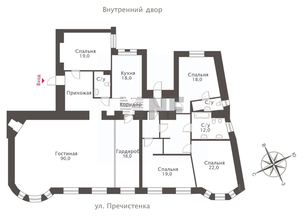 Лот: 82525. Предлагается видовая пятикомнатная квартира в историческом особняке на Пречистенке.