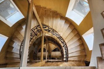 Планировка включает гостиную-столовую, профессиональную кухню, мастер-спальню, две гостевых спальни, кабинет, гардеробные, постирочную и три санузла.
