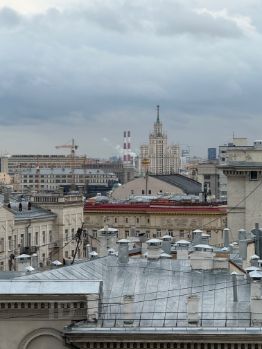 Квартира  оборудована необходимой техникой и мебелью:  кухня с плитой, холодильником, микроволновой печью духовым шкафом и посудомоечной машиной, а также просторная комната 26м2 с диваном и рабочим столом, есть кондиционер. Панорамное окно с видами на старинные московские здания и уютные дворики. Санузел с душевой кабиной и окном.