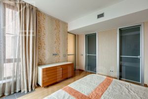 Планировка: кухня-гостиная с обеденной зоной, спальня, жилая комната (возможно под кабинет или вторую спальню), обе комнаты с гардеробными и совмещенными с/у. Квартира укомплектована мебелью Fendi, оснащена всей необходимой для жизни бытовой техникой, сантехника Villeroy&Boch. Приточно-вытяжная вентиляция, подогрев полов, кабельное ТВ, высокоскоростной интернет.