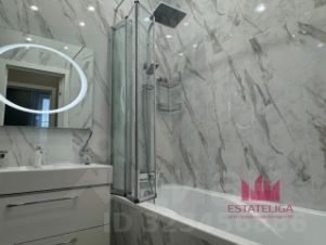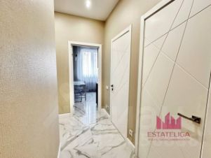Идеальный ремонт с дизайнерскими элементами: белый мраморный пол, натяжные потолки, современные магнитные дверные ручки, обилие света и подсветки.