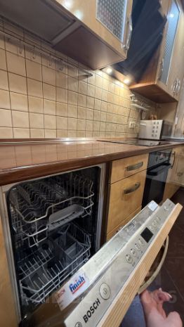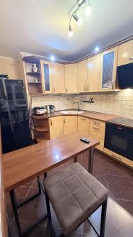 В квартире выполнен косметический ремонт. В комнатах и на кухне есть необходимая мебель, чтобы вы могли сразу заселиться. В санузле установлена ванна. Квартира оборудована всей необходимой техникой: кондиционер, холодильник, посудомоечная машина, стиральная машина и телевизор. Подключен интернет, что позволит вам оставаться на связи. В вашем распоряжении будет и мусоропровод, что облегчит утилизацию отходов.