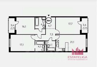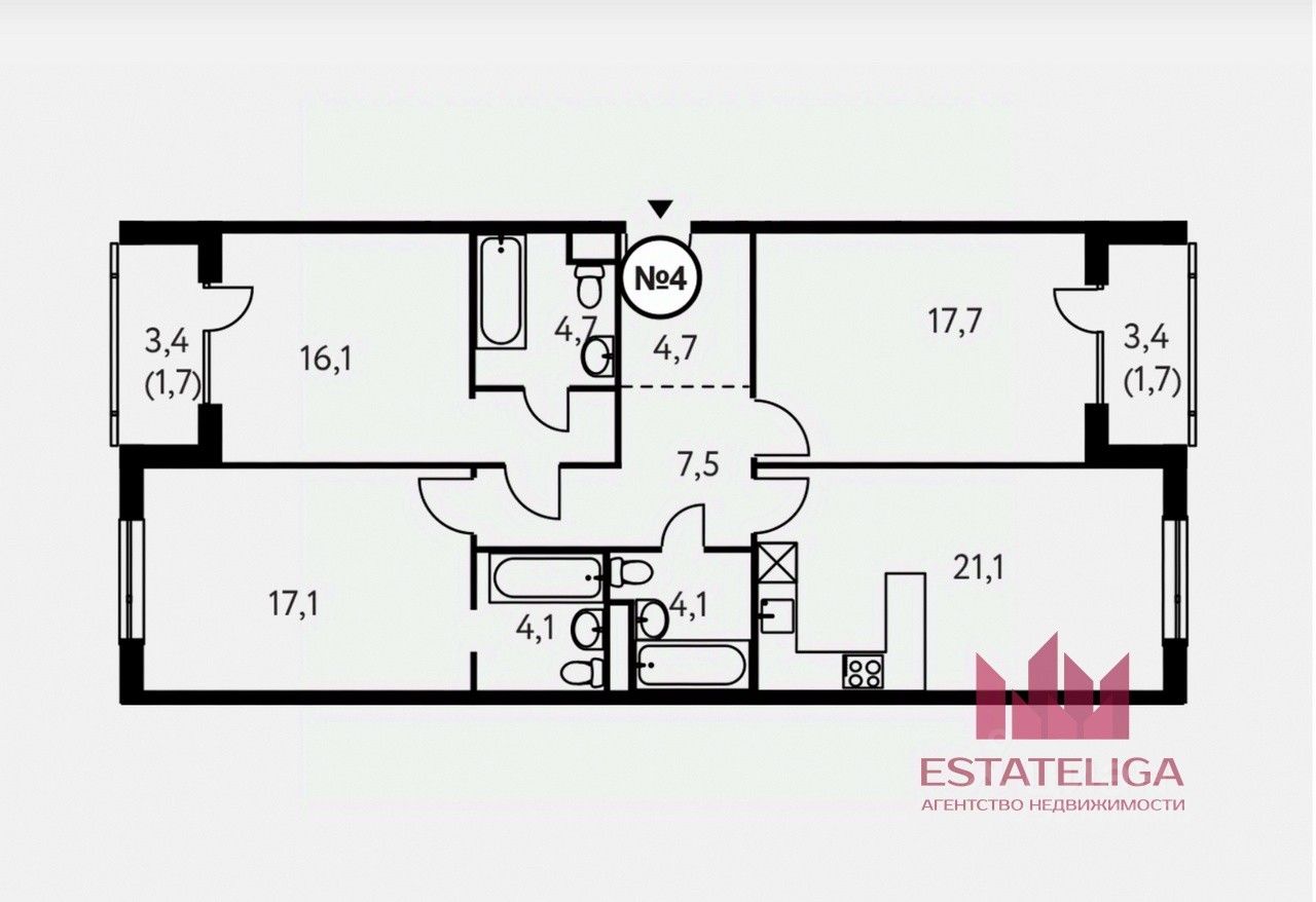 Id 57902. Вашему вниманию предлагается ШИКАРНАЯ трёхкомнатная квартира под склад в жилом комплексе бизнес-класса "Настоящее".