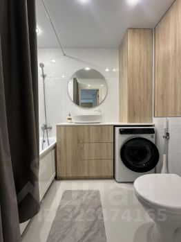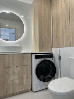 • Ванная с современным ремонтом, удобными шкафами и стиральной машиной LG