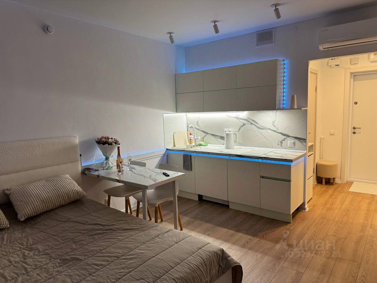 Сдаётся на длительный срок новая квартира-студия с дизайнерским ремонтом. В квартире имеется все необходимое для проживания: оснащённая кухня, большой телевизор с хорошей акустической системой, Алиса, удобная кровать с артопедическим матрасом IKEA, множество шкафчиков для хранения вещей. Изюминка квартиры -различные варианты подсветки и освещения(можно менять свет и цвет по настроению), и конечно же великолепный вид из окна на всю Москву.
