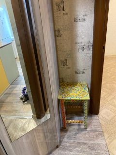 В комнате кровать и матрас средней жесткости. Пуф с небольшим местом для хранения в нем. Балкон с отделкой, по бокам два больших шкафа, сделан откидной стол. В прихожей угловой шкаф тодален икеа, вместительный, на двоих вполне. Также есть две антресоли в прихожей.