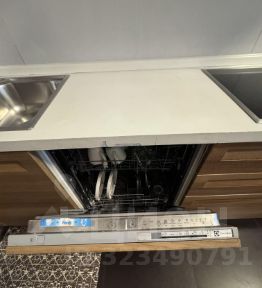 Просторная кухня/гостиная оборудована всей необходимой техникой: холодильником, посудомоечной машиной.