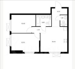Площадь: 51 кв.м, просторная планировка: гостиная 16кв.м, комнаты 12 и 10кв.м