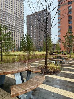 На первых этажах домов — кафе, магазины и полезные сервисы. Часто их открывают сами жители.