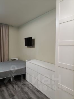 Студия с современной отделкой, укомплектована мебелью и бытовой техникой, шкафом для хранения и бытовыми приборами, всего этого достаточно для длительного полноценного проживания одного или двух человек.