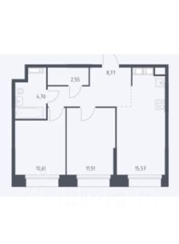 Вторая комната: мы оставили её пустой, предоставляя вам возможность обустроить её по своим задачам: кабинет, гардеробная детская или др.