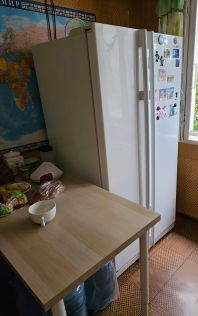 Раздельный санузел, стиральная машинка, большой холодильник, микроволновка.