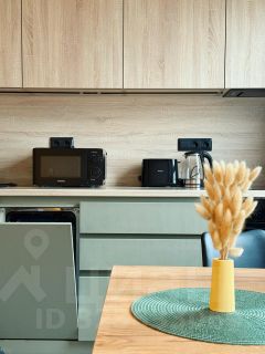 Входная группа, зона-ресепшн с круглосуточной охраной, закрытый двор с детской и спортивной площадкой, парковка, магазины, аптеки, кафе, рестораны, бульвар и набережная для прогулок!