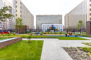 Презентабельная входная группа. Огороженная охраняемая территория с подземным паркингом, огромным внутренним благоустроенным двором с детскими площадками и развитой внутренней инфраструктурой (магазины, кафе, аптеки, салоны красоты, фитнес клуб). На территории комплекса работает фитнес-клуб, оборудованы детская площадка и паркинг. Рядом находятся магазины, детская поликлиника и детский сад, немного дальше - кафе, аптеки. В пешем доступе прогулочные зоны леса Октябрьское поле и парка Березовая роща. Удобный выезд на улицу Народного Ополчения и Звенигородское шоссе.
