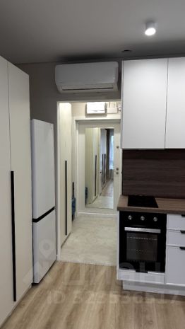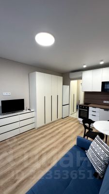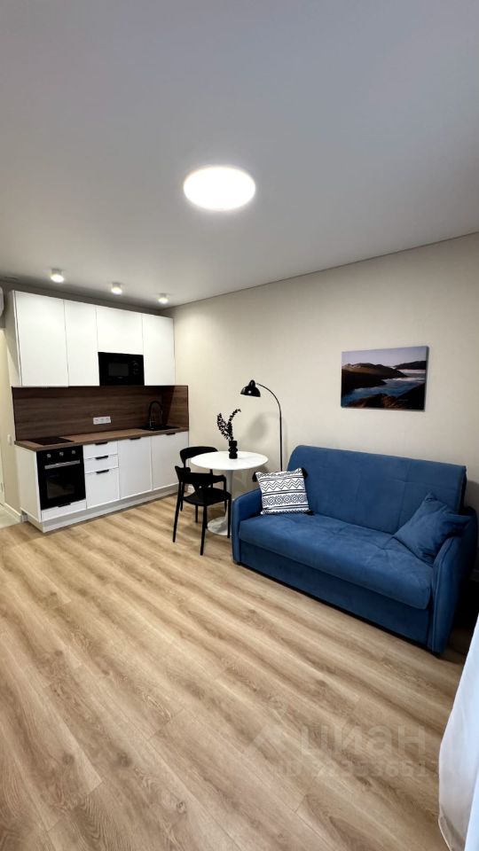 Это - квартира-студия: кухня совмещена со спальной зоной.