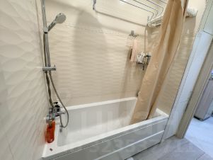 Квартира радует дизайнерским ремонтом и продуманной планировкой. Большая кухня площадью 16кв. м полностью меблирована и оснащена всей необходимой техникой: холодильником, посудомоечной машиной и стиральной машиной. В уютной комнате также есть вся мебель, что делает её готовой к комфортному проживанию. Ванная комната оснащена ванной. В квартире установлен кондиционер, а наличие интернета позволит всегда оставаться на связи.