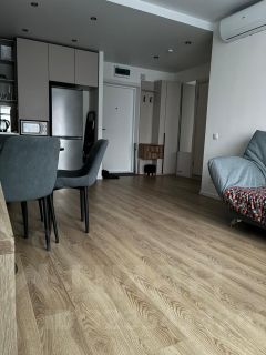 В квартире есть все необходимое для комфортного проживания. Просторная комната обставлена современной мебелью, которая создает уютную атмосферу. Кухня оборудована техникой: холодильник, посудомоечная машина, а также стильная мебель. В ванной комнате установлена ванна, а также стиральная машина. Для вашего удобства в квартире есть кондиционер и телевизор. Высокоскоростной интернет и телефон обеспечат связь с внешним миром.