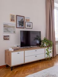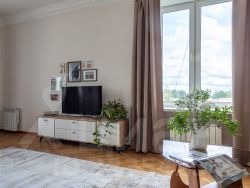 В квартире сделан стильный дизайнерский ремонт. Просторная кухня в 10 кв. м обставлена современной мебелью и оснащена всей необходимой техникой: холодильником, посудомоечной машиной и плитой. В комнатах также есть необходимая мебель для комфортного проживания. Ванная комната оборудована душевой кабиной. Для вашего удобства в квартире установлены кондиционер, телевизор и стиральная машина. Из окон открывается вид на улицу, а на балконе можно наслаждаться свежим воздухом.